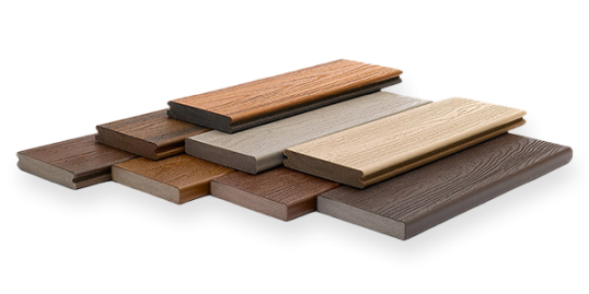 Experience our composite deck boards, crafted in the USA from 95% recycled plastic and sawdust, offering durability, sustainability, and style for lasting outdoor enjoyment.
